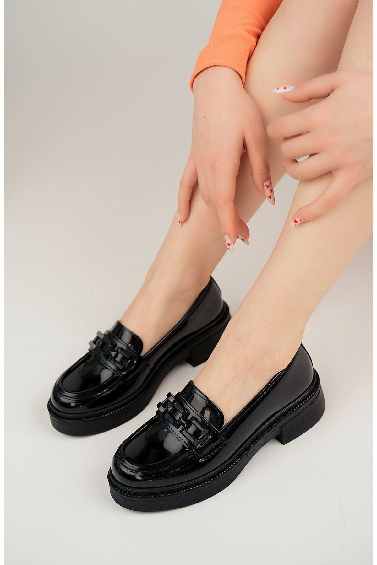 Dolgu Topuk Siyah Rugan Kadın Ayakkabı